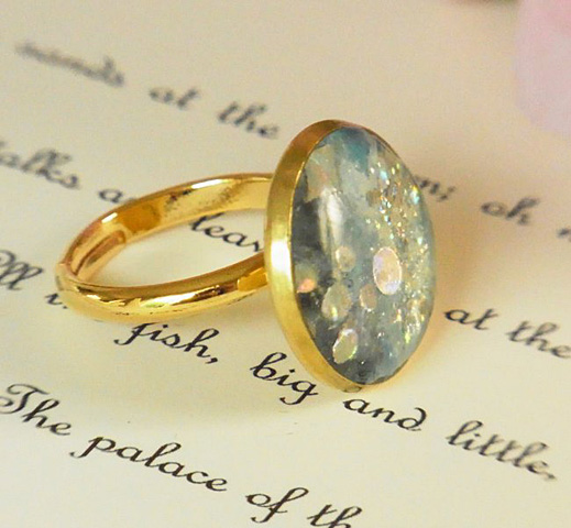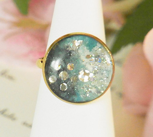 あえてメタルパーツ等を閉じ込めず背景を主役にしたリングです。