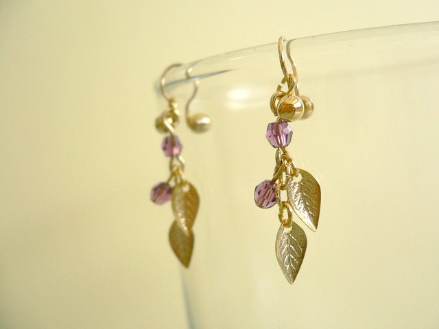 ゴールドカラーの葉っぱが耳元で繊細に揺れます。
