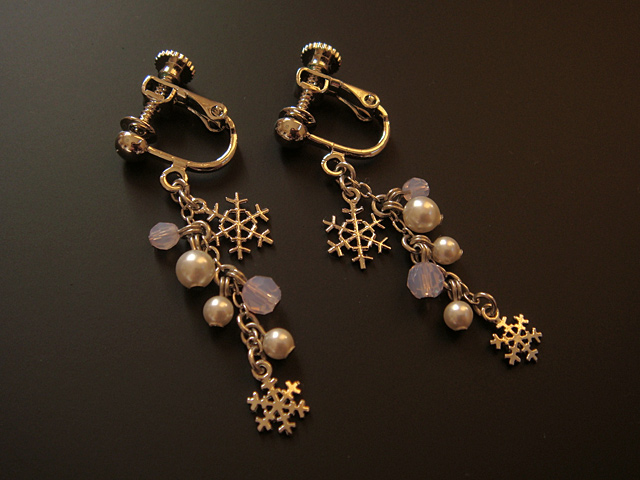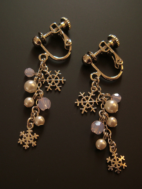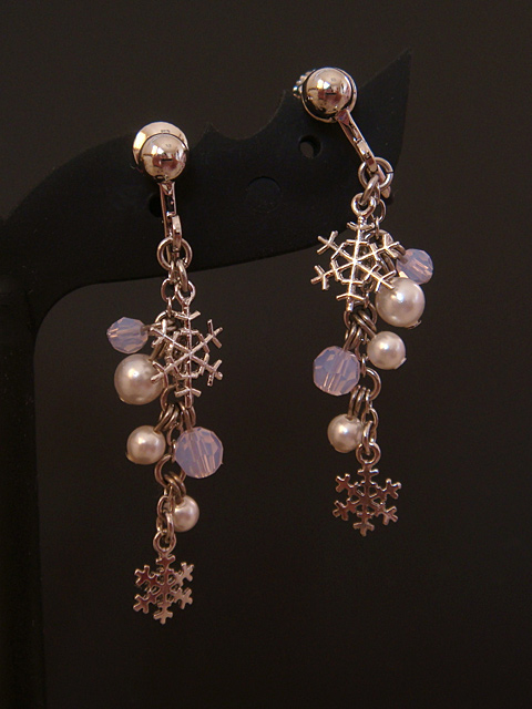 繊細な雪の結晶のメタルパーツに、混じり気のないホワイト調のパールとほんのりクールなミルキーピンクのクリスタライズを合わせました。