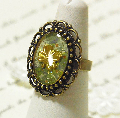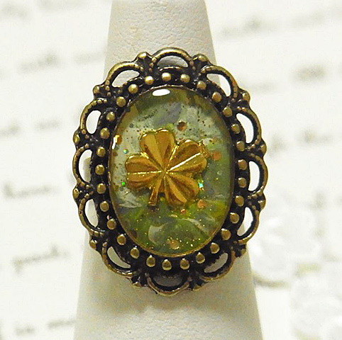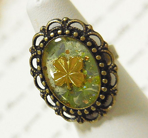 幸せの四つ葉のクローバーをレジンで閉じ込めました。