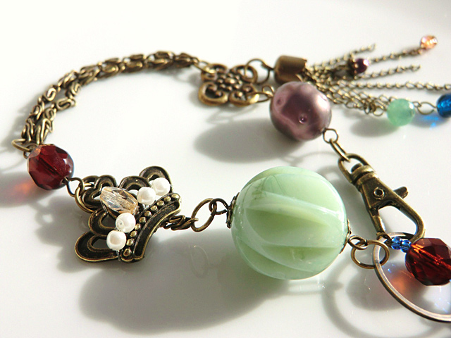 金属部分:合金、ビーズ:ガラス・アクリル・天然石・シェル、パール:プラスチック、ビーズの接着:テグス |