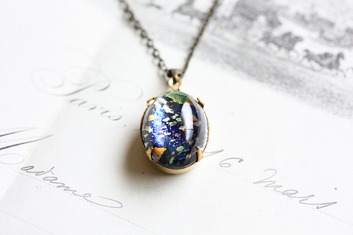 ブラックにブルーやゴールドなどのカラーが散りばめられた素敵なカボション。