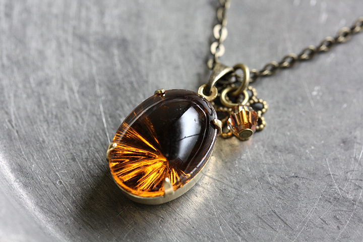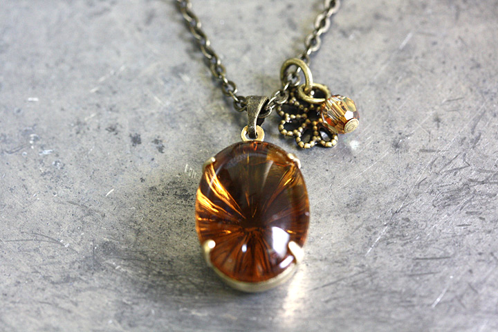 スワロフスキー(クリスタルカッパー)とお花の透かしパーツをあわせました。