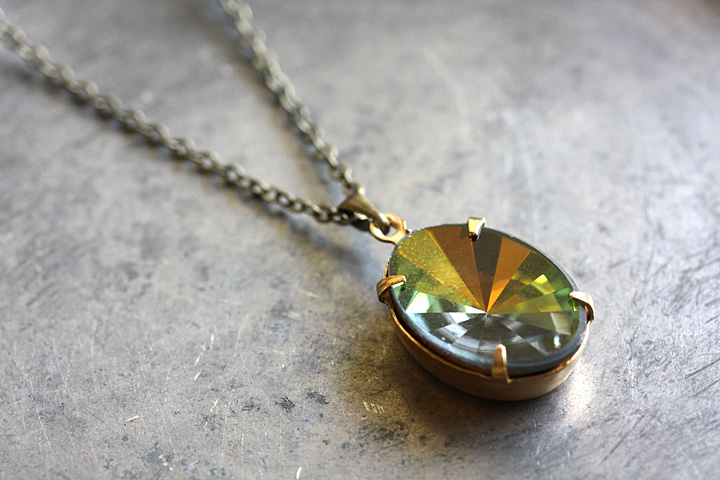 トップ:約18×13mm (ストーン)、チェーン:約 40cm+アジャスター約5cm、金具の色:金古美 |