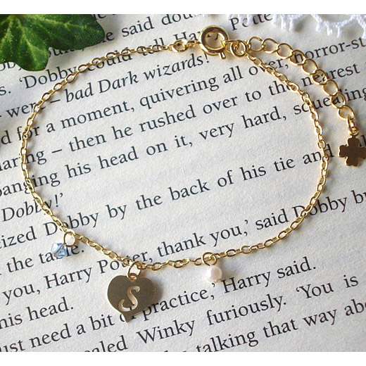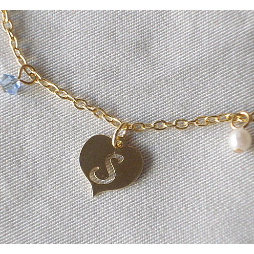 ハートのイニシャルモチーフとパールとスワロフスキーを組み合わせたブレスレットです。