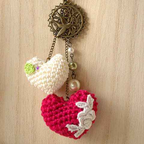 ゆらゆらと揺れるハートが可愛いバッグチャームです。