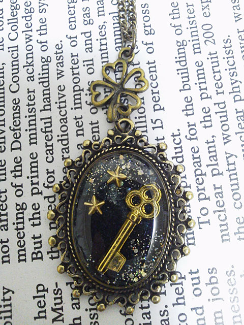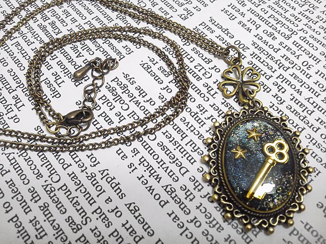 - クリスタルレジン、チェーン (金古美)、チャーム