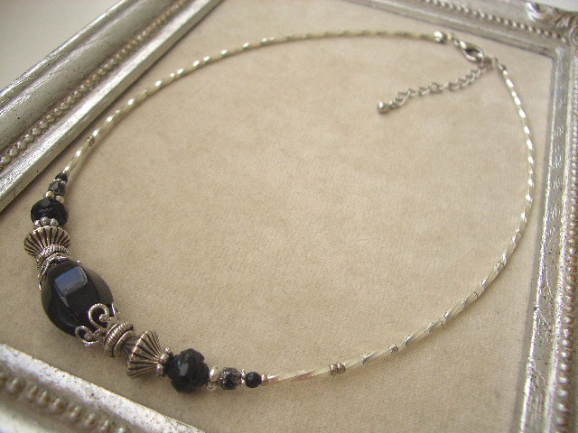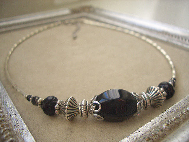 漆黒色の艶が美しいブラックオニキスのチョーカーです。