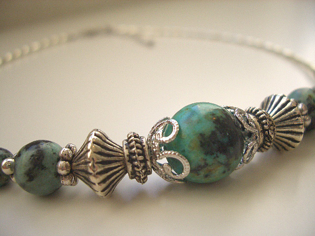 個性的な模様がとてもきれいな、アフリカンターコイズを使ったチョーカーです。