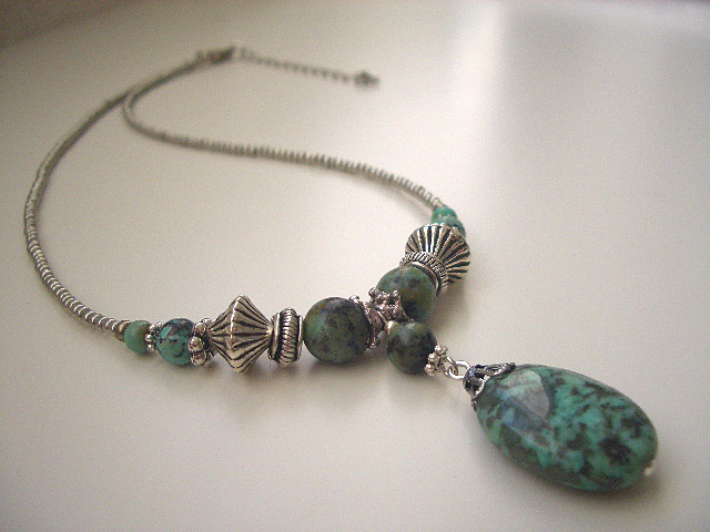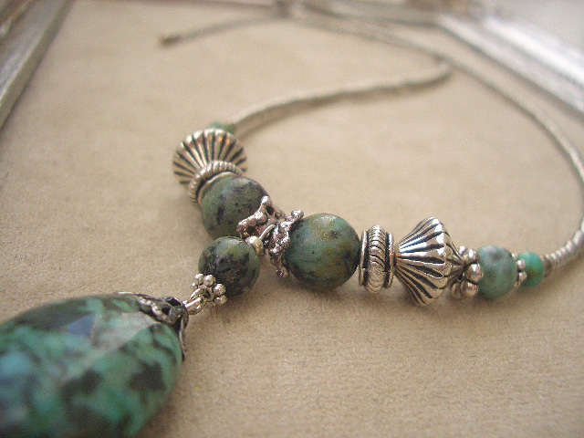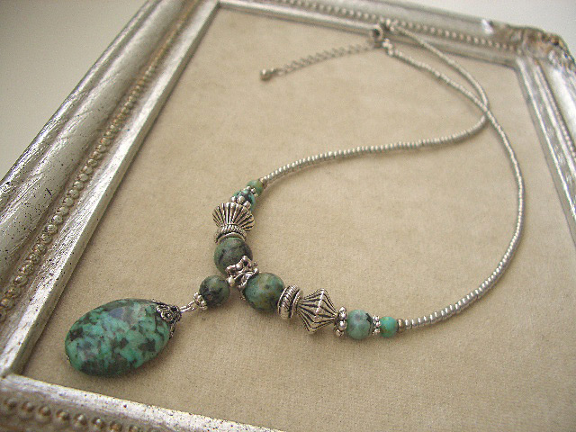 個性的な模様がとてもきれいな、アフリカンターコイズを使ったネックレスです。
