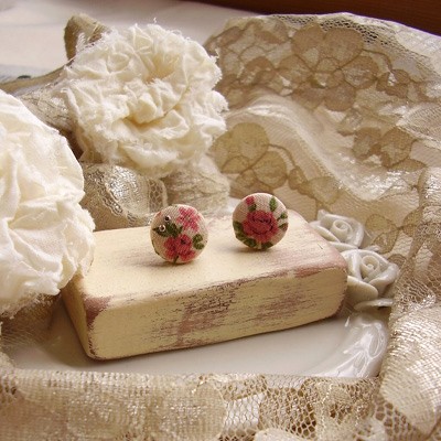 小さな小さなくるみ釦を作って、ピアスに仕立てました。
