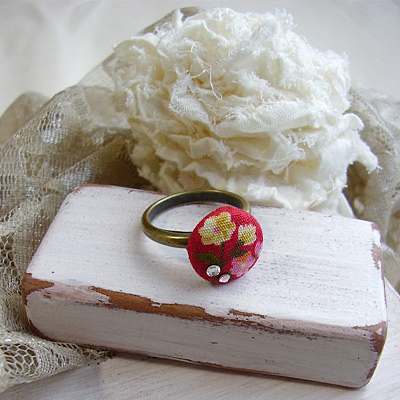 小さな小さなくるみ釦を作って、指輪に仕立てました。