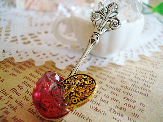 レジン (樹脂)、スプーン シルバーメッキ、チャーム ゴールドメッキ、金具 シルバーメッキ |