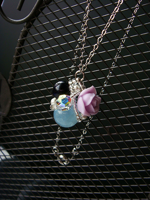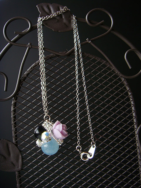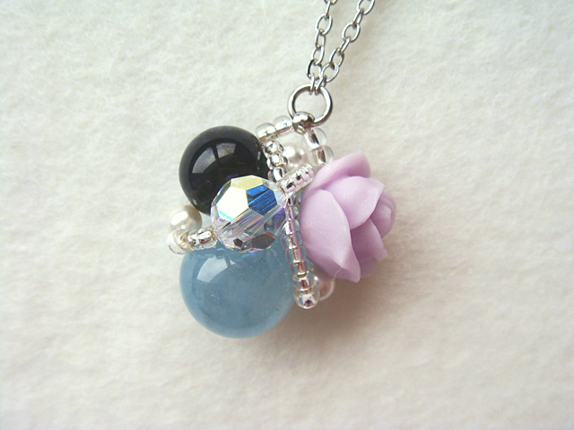 薄紫色の薔薇パーツを合わせ、個性的なデザインに仕上げました。