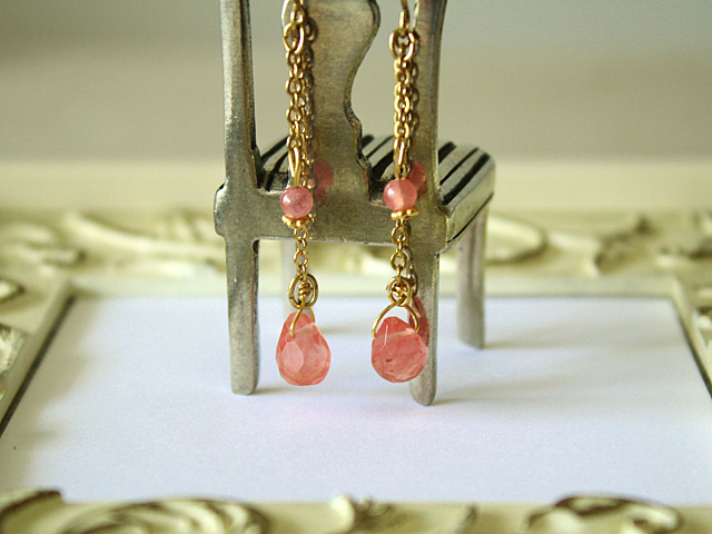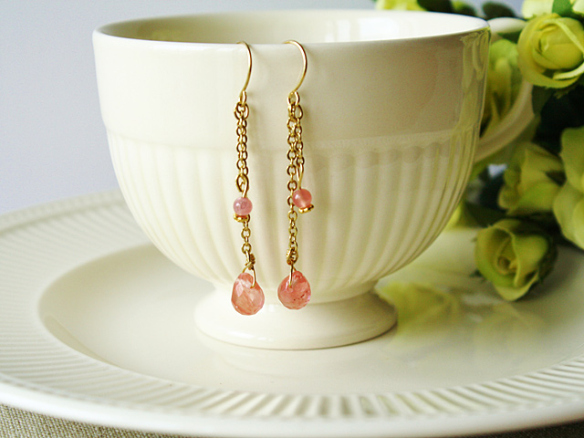 半透明のチェリーキャンディーのような色合いが美しいピアスです。