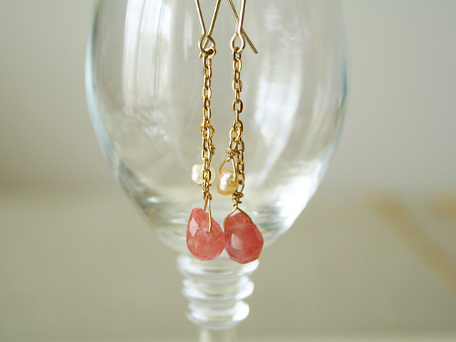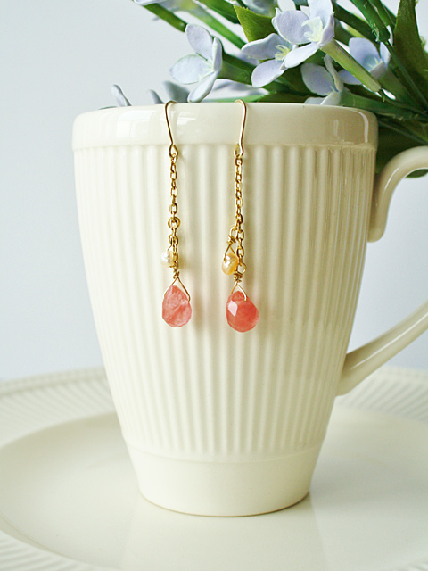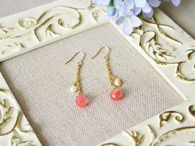 半透明のチェリーキャンディーのような色合いが美しいピアスです。