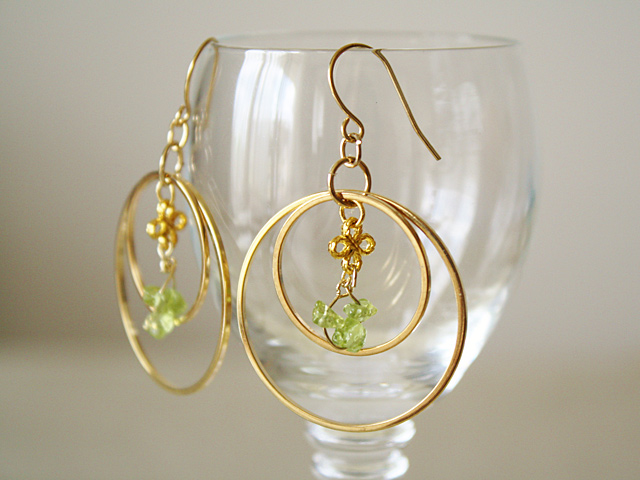 金色のクローバーのパーツと、ペリドットの半透明のグリーンがさわやかな印象です。