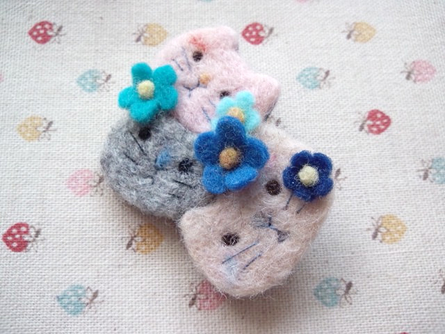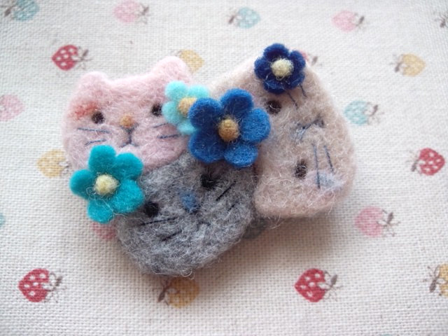 ねことお花が集まったかわいらしいブローチです。 ねこと花の色がそれぞれ違います。
