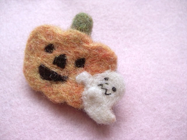 かぼちゃと おばけのハロウィンらしいブローチです。