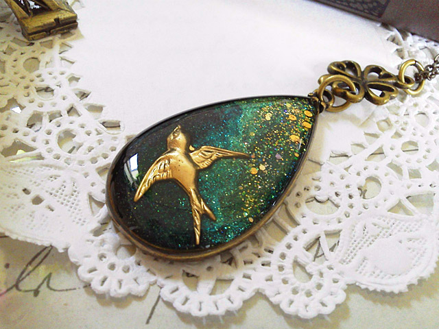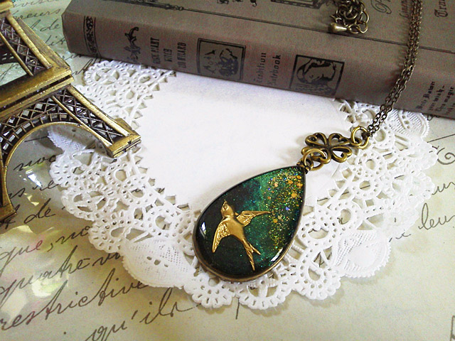 「くづ*」の 【夜空を飛ぶツバメのペンダント】です。