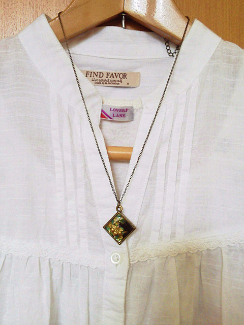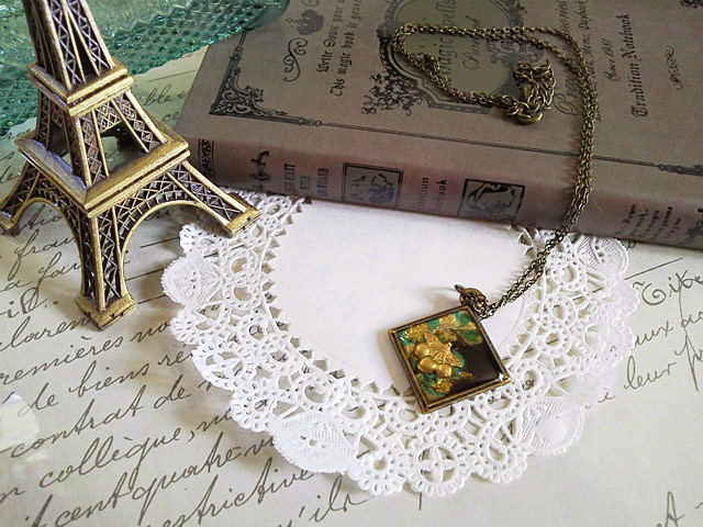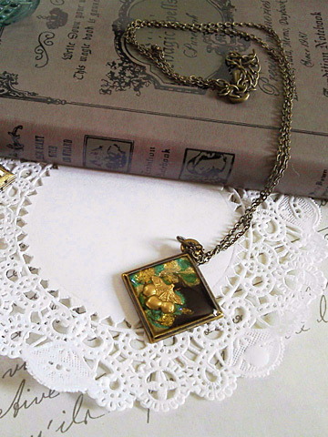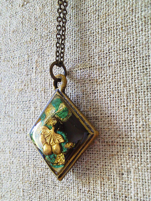 黒を背景に、 グリーンとゴールドのカラーを ポイントに塗りました。 ベリーのチャームで、 上品なネックレスに仕上がりました。