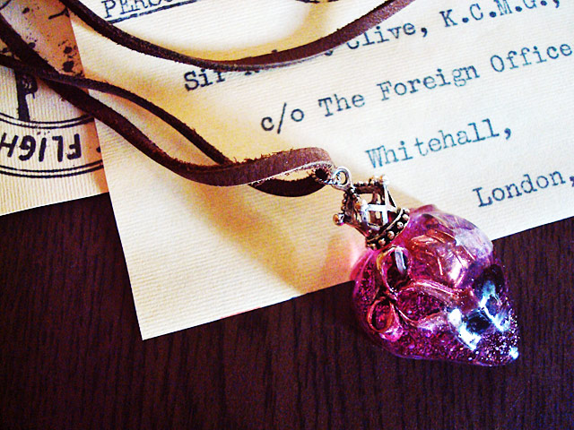 レジン (樹脂)、金具 シルバーメッキ、合成革ひも |