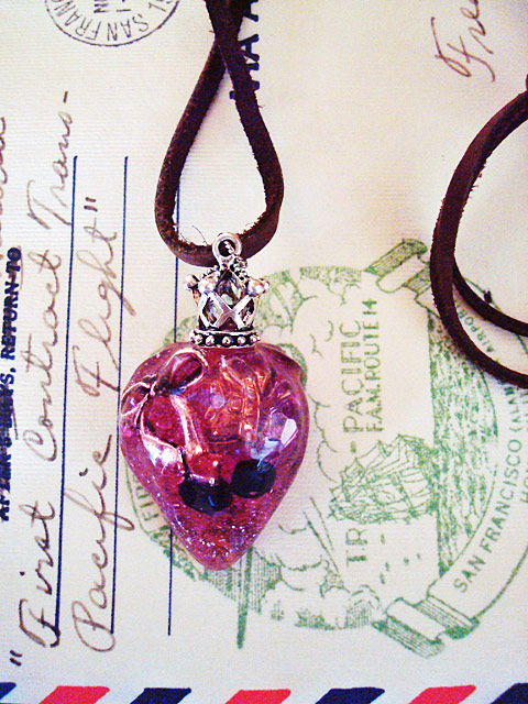いちご型のレジンの中にビーズやチャームを閉じ込めてみました。