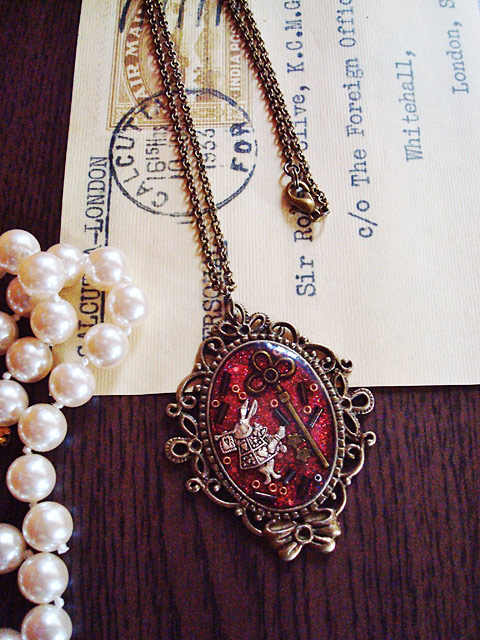 大きめフレームにトランプうさぎやカギチャームをレジンで閉じ込めました。